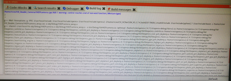 对应于上述设置,选择debug或release模式,点击build或rebuild,可见如下编译命令,将在工程目录(/home/rcnn/HK_Double_Camera/HKIPcamera/bin/Debug)下生成libHKIPcamera.so动态共享对象。