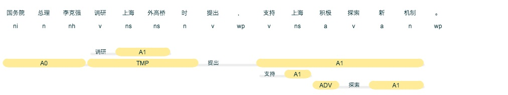 其中有三个谓词提出,调研和探索。以探索为例,积极是它的方式(一般用ADV表示),而新机制则是它的受事(一般用A1表示)