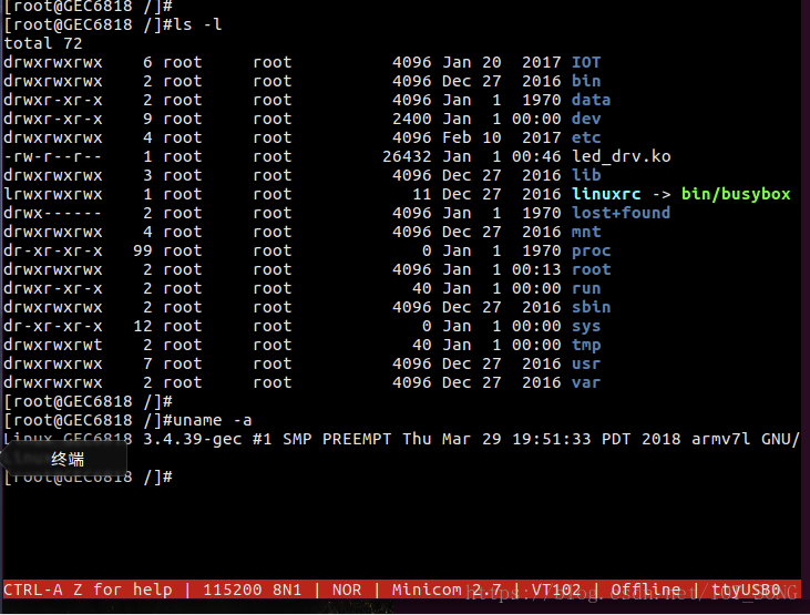 这样修改后,以后直接用minicom命令就可进入彩色版的minicom界面了