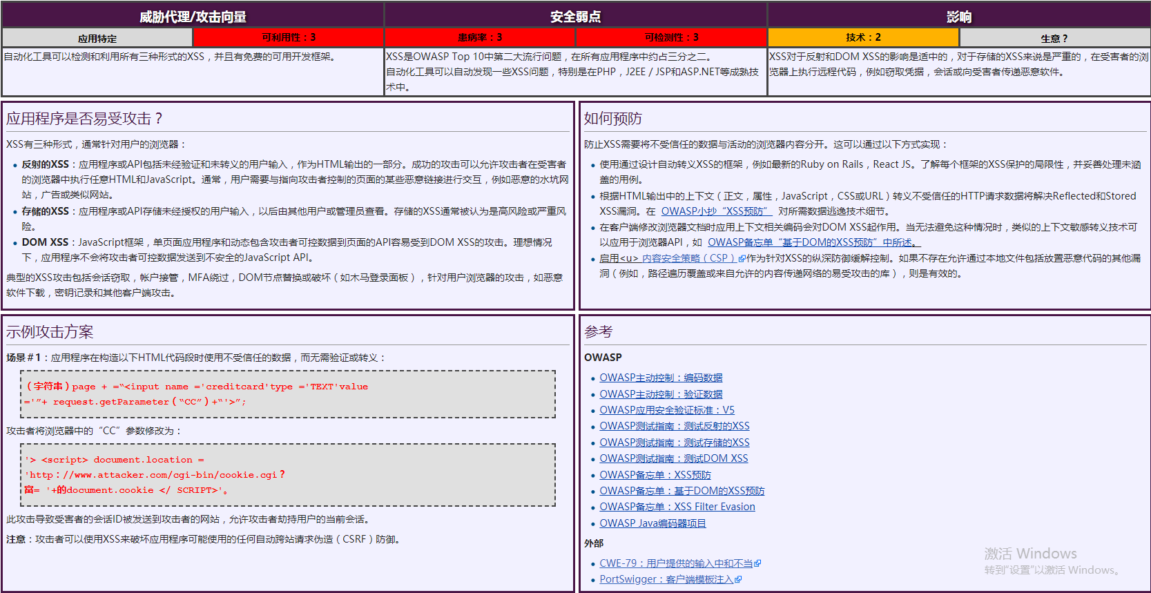 当应用程序的新网页中包含不受信任的、未经恰当验证或转义的数据时,或者使用可以创建 HTML或 JavaScript 的浏览器 API 更新现有的网页时,就会出现 XSS 缺陷。XSS 让攻击者能够在受害者的浏览器中执行脚本,并劫持用户会话、破坏网站或将用户重定向到恶意站点。