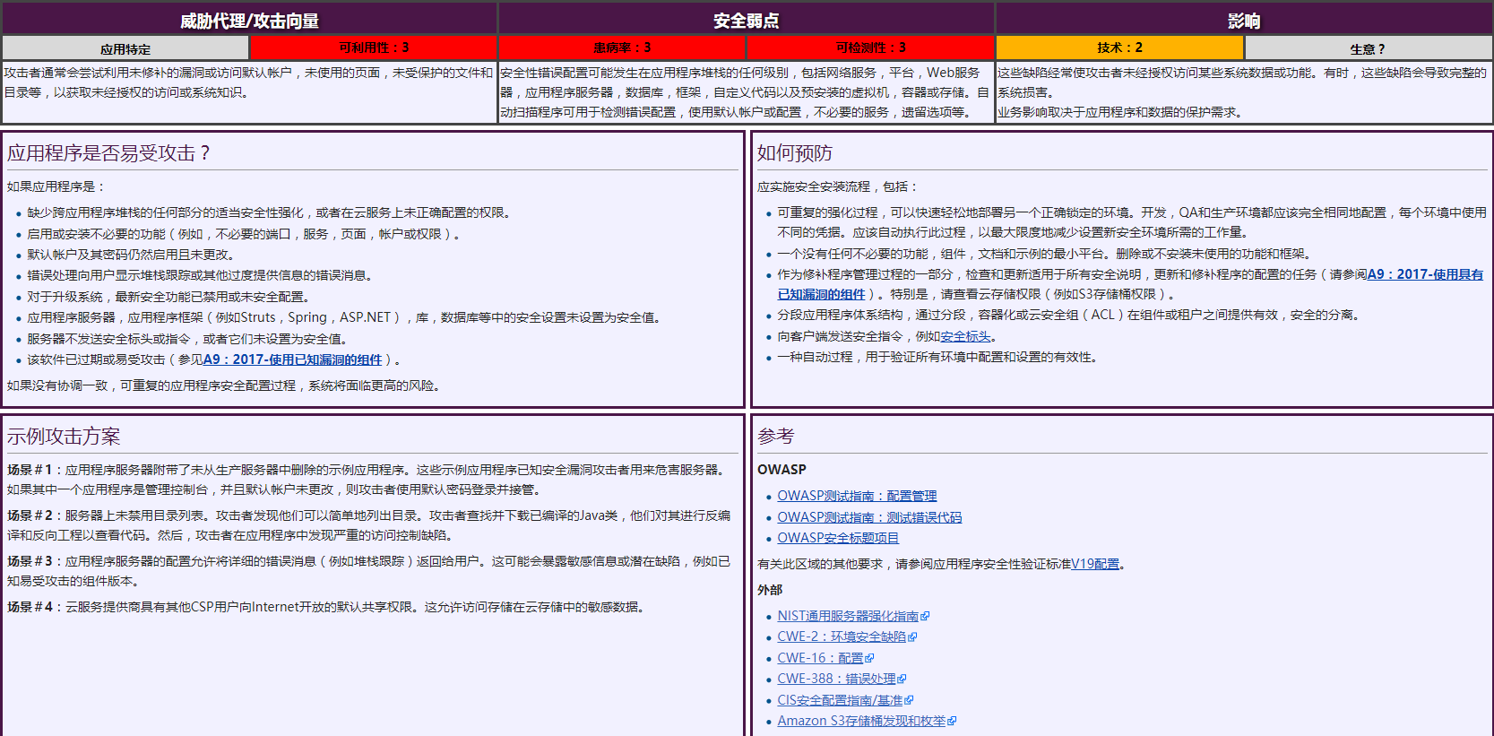 安全配置错误是最常见的安全问题,这通常是由于不安全的默认配置、不完整的临时配置、开源云存储、错误的 HTTP 标头配置以及包含敏感信息的详细错误信息所造成的。因此,我们不仅需要对所有的操作系统、框架、库和应用程序进行安全配置,而且必须及时修补和升级它们。