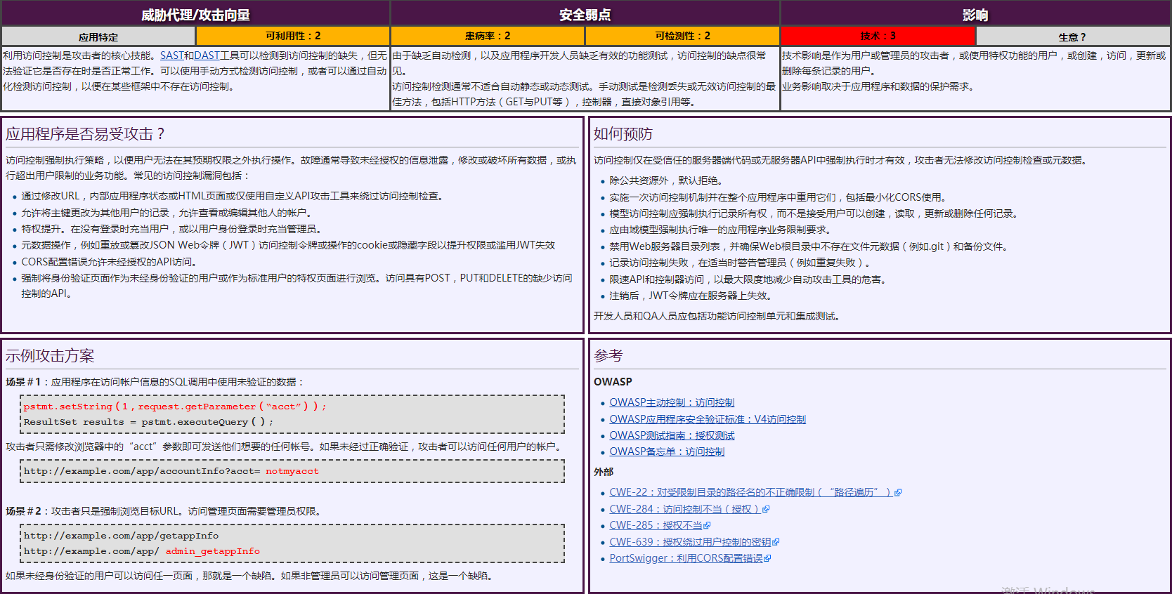 未对通过身份验证的用户实施恰当的访问控制。攻击者可以利用这些缺陷访问未经授权的功能或数据,例如:访问其他用户的帐户、查看敏感文件、修改其他用户的数据、更改访问权限等。