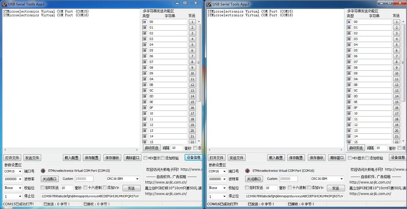 | 背景资料 众所周知,国内开发学习板80%以上的市场,已被意法半导体占领,铺天盖地的中文资料,众多新生力量 的加入,使意法半导体的DSC芯片逆袭成为众多高校电子信息工程的必修科目。事实上,NXP等众多厂家 芯片的实力更强,然而意法半导体在价格上以绝对优势占领了市场,尘埃落定,其它IC厂家只剩眼红而已。 桂林电子科技大学,主要使用NXP的Cortex-M3,北航各家都有,主要是ST的,清华大学2014年开始 布局ST公司的芯片研究,同时也不放弃50MHz以下的Cortex-M0,江苏的大学主要研究其它厂商的 Cortex-M4。现在随随便便一个电子专业的毕业生,都对Cortex-M3芯片了如指掌。 一、USB Serial tools 软件简介 USB Serial tools 是本人于2012-2013年业余制作的开发调试工具软件包,通过注册WINDOWS消息通知, 具备了USB虚拟串口设备插拔检测的能力,不同于传统的调试工具,该软件还可以让技术开发人员便捷地 查看USB虚拟串口设备的生产厂商信息。 二、USB双虚拟串口简介 意法半导体官方在2007-2013年,在多个Cortex-M3系列上实现了各种USB设备,其中包含 CDC 设备,即 USB虚拟串口,经过多年数个版本的更新,意法半导体的USB CDC例程仍然存在很多不足之处,和一些 BUG,本人参考了国外大牛的基本通讯例程,和意法半导体最新的4.0版本CDC例程,经过大约1个星期 断断续续的改进,终于实现了USB双虚拟串口,测试硬件平台为大虾开发板 (STM32F103VCT6核心板),软件平台为MDK-ARM 4.74。 国外大牛实现的双虚拟串口,使用自己编写的驱动文件,没有经过微软数字签名,而且收发通讯只做演示, 并没有设置任何缓冲,不能作为产品。本人在前人的基础上修改而成的USB双虚拟串口,驱动文件在ST 官方inf文件的基础上修改,能通过微软数字签名。 USB Serial tools和通过微软数字签名认证的USB双虚拟串口这一套组合产品,属于国内首创技术, USB Serial tools软件正准备申请软件著作权专利。 三、USB双虚拟串口的测试 利用USB Serial tools软件对USB双虚拟串口的部分测试,如图1-1所示。 ![]() 图1-1 USB双虚拟串口全双工收发压力测试 ![]() 图1-2 USB Serial Tools对USB双虚拟串口设备的识别信息 ![]() 图1-3 WIN7-X64对 USB双虚拟串口的识别信息(驱动程序通过微软数字签名) ![]() 图1-4 专业工具Bus Hound对USB双虚拟串口通讯过程的监视情况 Bus Hound对虚拟串口(COM16)的监视及说明: ![]() 图1-5 64字节数据包循环发送测试(10次循环) 备注: 1. 发送方为虚拟串口COM15,发送周期: 30毫秒 数据包长度: 64字节 2. 之所以测试64字节,是因为USB 2.0 Full Speed (USB1.1)通讯数据包最大只有64字节; 数据包小于64字节时,Windows知道这个包收完就没有了,会马上读取; 数据包等于64字节时,Windows不知道后面还有没有发完,要求USB虚拟串口设备再发一个空包,告诉它数据包结束了。 ![]() 图1-5 129字节数据包循环发送测试2(5次循环2Mbps) ![]() 图1-5 129字节数据包循环发送测试1(5次循环2Mbps) 备注: 1.Windows驱动每次都读到129字节,但实际的USB传输还是按照3次传输,一般是(64+64+1)。 2.注意这里测试波特率提高到1-2Mbps是为了减少数据传输时间。 串口波特率不能提高到1Mbps以上,主要是受到RS485物理层收发芯片及高速光藕的价格影响,另外串口 速度高,通讯距离也收到限制,常规应用串口波特率基本都在500kbps以内。 四、USB CDC设备可靠性的决定性因素 USB 双虚拟串口属于USB复合设备中的其中一种,也成为双CDC通讯设备。 USB CDC设备可靠性,取决于软硬件系统的整体设计。不管是X893的inf还是stmcdc.inf, 实际上都是调用微软的驱动文件usbser.sys,usbser.sys不会出现问题,所以CDC设备的 可靠性就取决于上位机上层软件和下位机的整体设计水平。 上位机有多种CDC设备的工具软件,可以相互取代,因此下位机底层驱动软件的鲁棒性及 硬件的可靠性设计就显得尤为重要(这也是为什么我花很多时间去测试的原因)。 硬件方面,USB的TVS保护和布线,由于时钟信号只有12MHz,处理比较简单。 软件方面,主要是看设计者对通信的各种情况考虑的是否周全,是否会有bug。 比如ST公司的工程师参考了中国设计者的代码,但没有理解的很深刻,将63字节 的缓冲定义改为64字节,但在数据包刚好是64字节时,未添加空字节包确认,这个bug至今未修改。 如无人值守的场合,可以利用USB双虚拟串口的其中之一,提供一个周期性的信号, 利用STM32或外部独立的芯片,监视这个周期性信号是否存在,从而通知STM32F103 "移除设备",延时一段时间后再恢复工作。当然还需上位机的配合,上位机必须要 具备USB设备移除和插入的检测功能,防止自己崩溃,才能恢复正常的工作。 一般场合,USB设备出现故障的概率很低,不需要另外的监控信号。 |