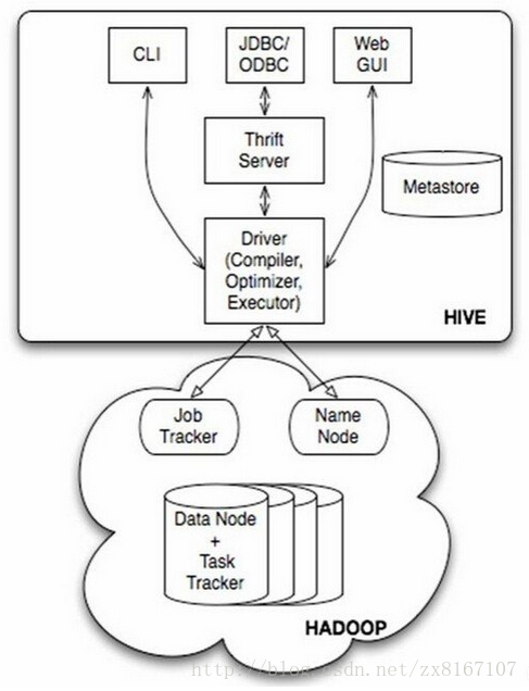 hadoop上层套了一个壳,来实现对hdfs上结构化数据的映射,为上层提供sql服务。