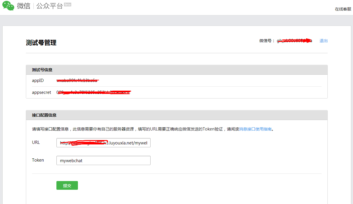 开发者接入验证 确认请求来自微信服务器的基本代码已经完成,下面让我们来测试一下吧