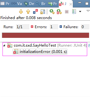 用JUnit测试一段代码,出现报错method initializationerror not found;出现如下问题: