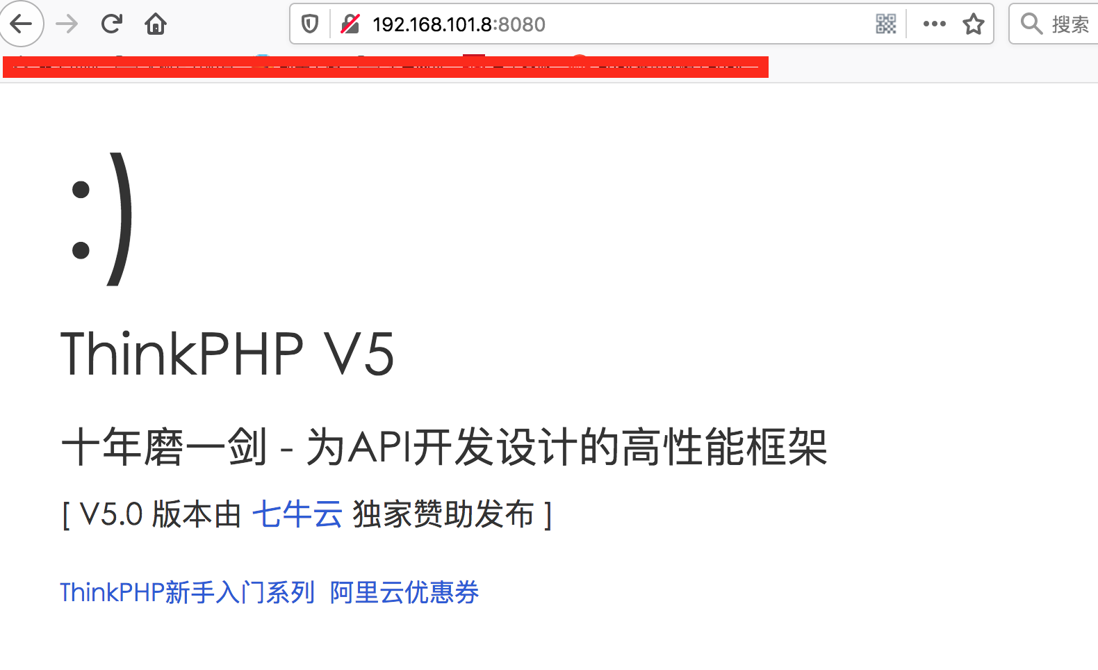 去vulhub上搜了下ThinkPHP,还真有,把docker容器打开看了下,页面一摸一样哈哈: