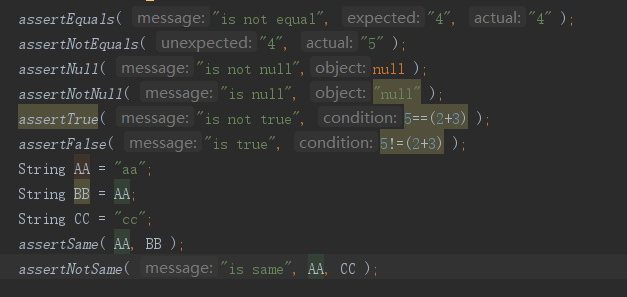 assertTrue,断言为真,如果为假(false)则抛出异常和信息