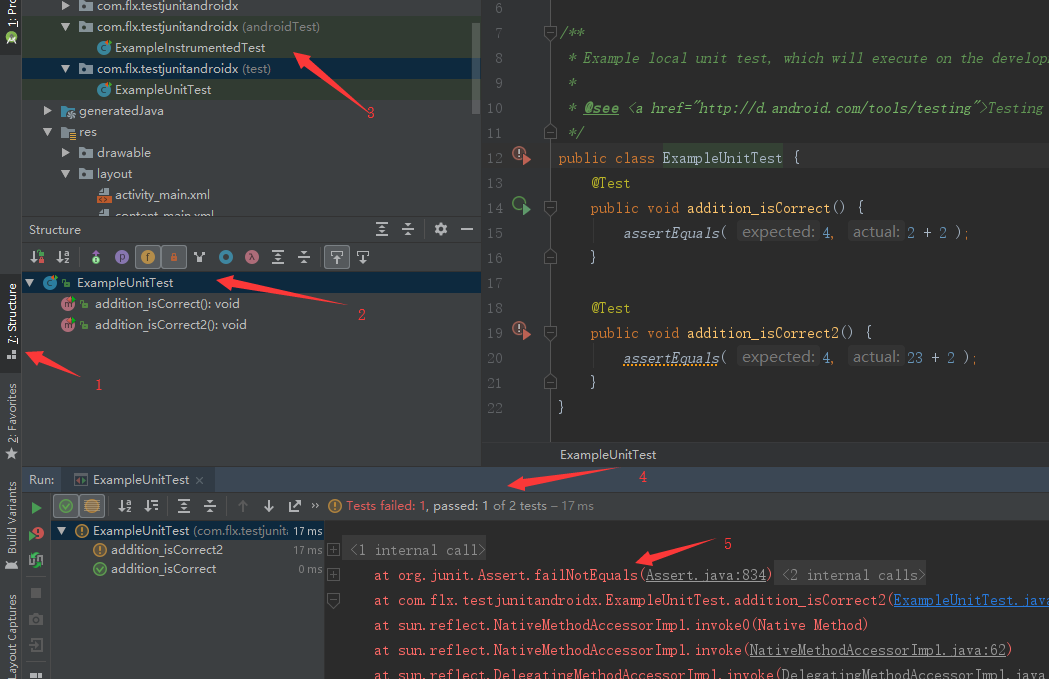 (3)3处有androidTes和test两个文件夹,有什么区别呢,
