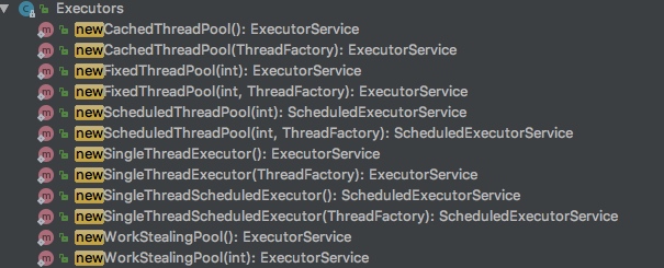 从上图中也可以看出,Executors的创建线程池的方法,创建出来的线程池都实现了ExecutorService接口。常用方法有以下几个: