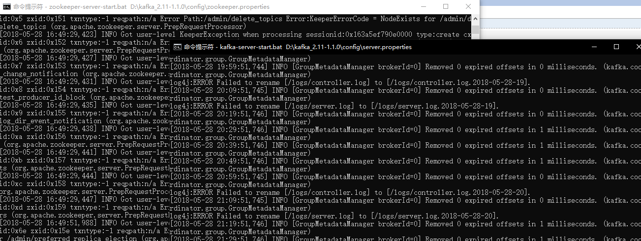 好了接着我们首先要启动上一篇随笔所提到的zookeeper,和Kafka,如下: