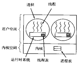 - 同一进程中只能同时有一个线程在运行,如果有一个线程使用了系统调用而阻塞,那么整个进程都会被挂起。另外,页面失效也会产生同样的问题。