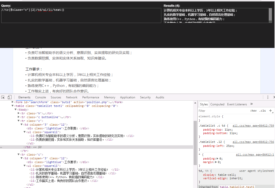 15 position_need=page_HTML.xpath("//tr[@class='c'][2]/td/ul/li/text()")