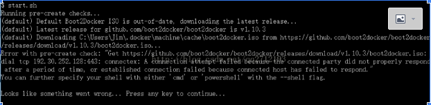 这是因为没有找到默认的boot2docker镜像的原因,提示正在下载,然而github的下载速度不可恭维,第一反应都是找别的站资源下载。