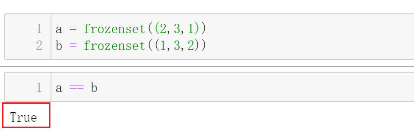 这里值得注意的frozenset这个数据结构,即使里面的结构不同,但是他们是相等的: