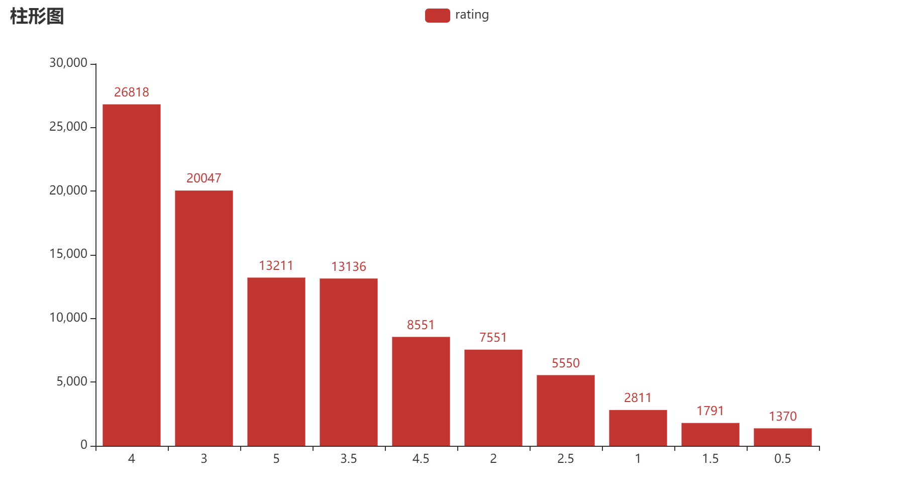 加载完数据集后。我们需要进行判断出用户是否喜欢某个电影,因此我们可以使用评分来判断。当用户对某一个电影的评分大于等于4分的时候,我们就可以认为该用户喜欢这部电影。