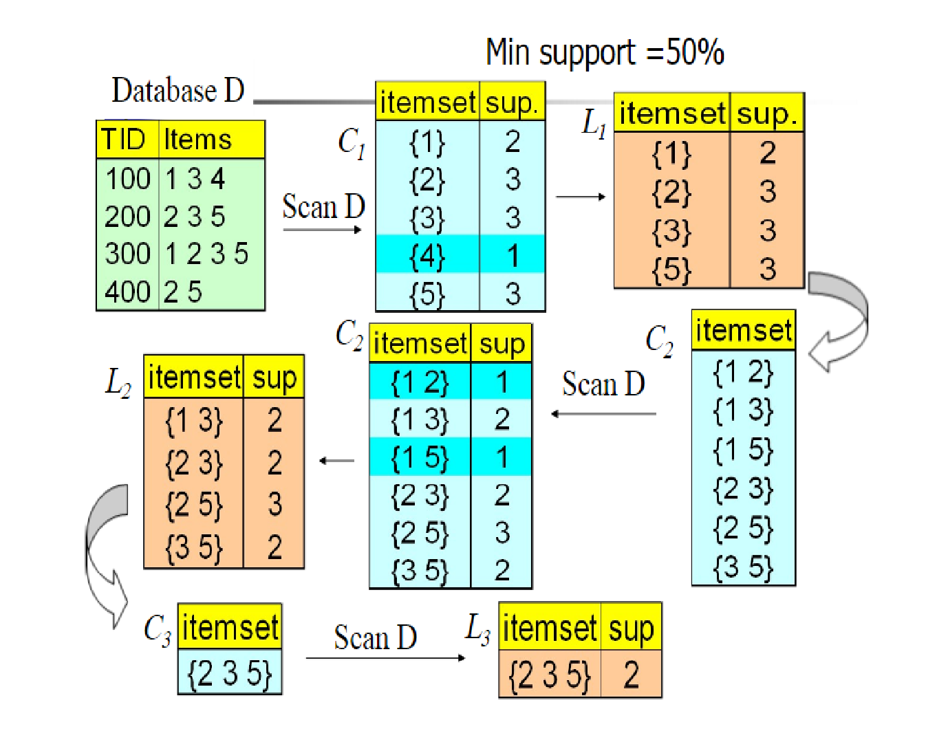 下面代码与上图不同是我们使用的去除规则不同,规则是如果项集的数量少于min_support就去除。