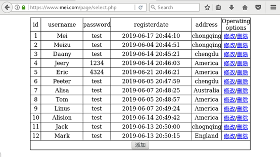 测试我们的https网站的php网页能够正常访问,且地址栏的地址一致是rhel7.mei.com: