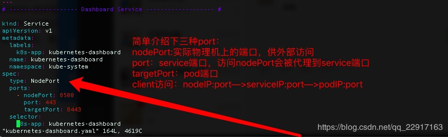 官方的kubernetes-dashboard.yaml文件中service的type类型为clusterIp(service默认类型),这种方式要访问dashboard需要通过代理,所以我们改为NodePort方式,这样部署完后,就可以直接通过nodeIP:port的方式访问