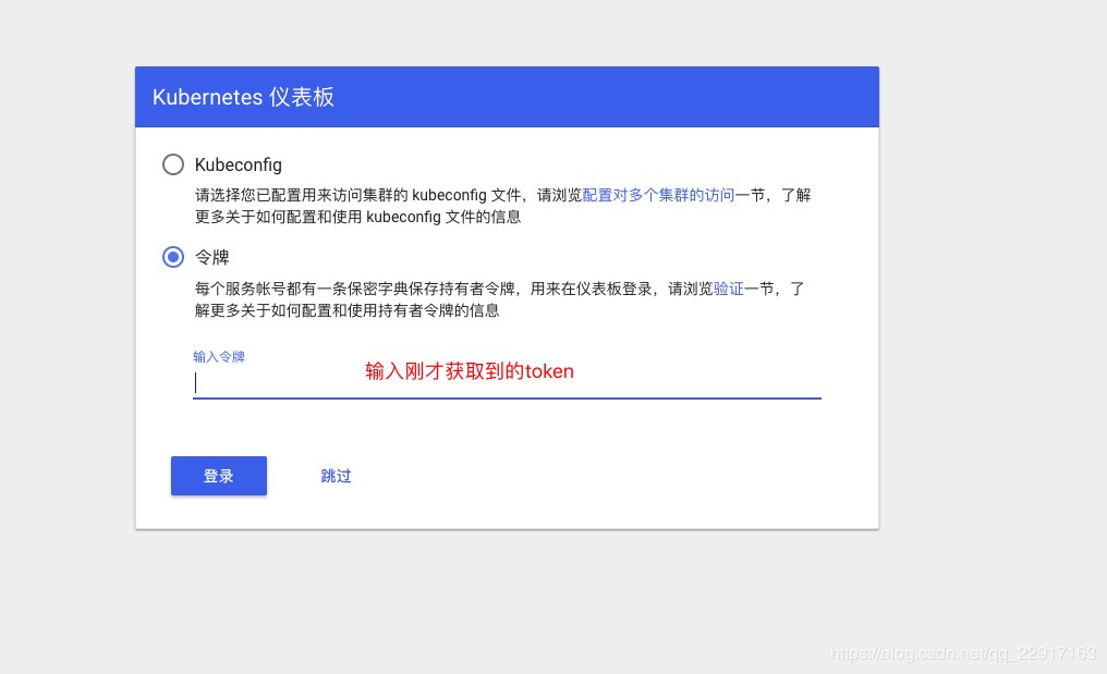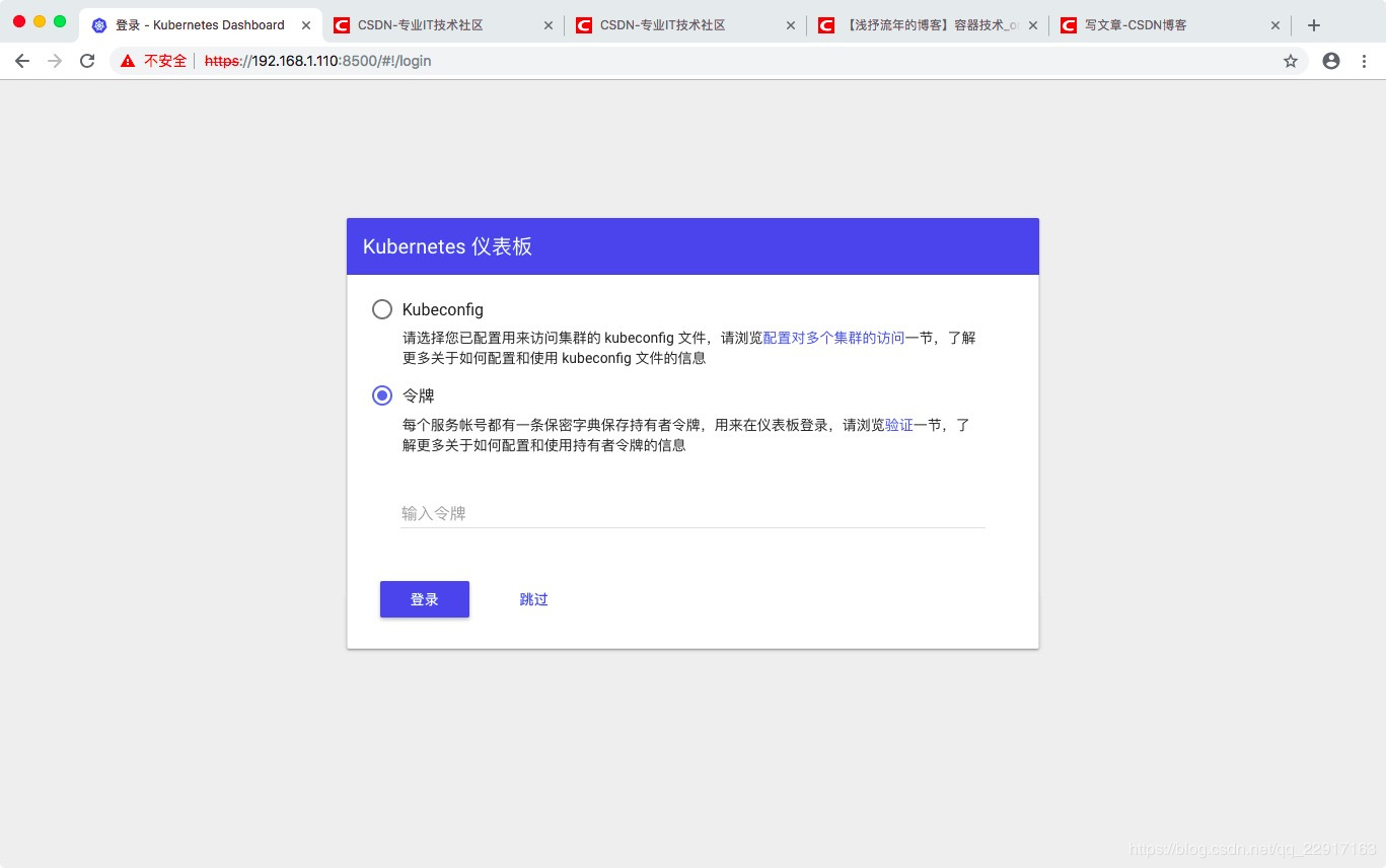 当部署成功后,我们就可以访问dashboar的图形界面了(使用任何一个节点的宿主机ip:port访问)