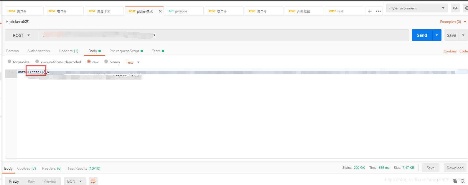上面是设置发送请求前的data数据,参数以{{data}}方式表示,如图: