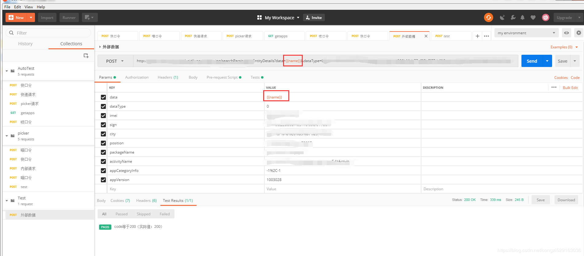 pm.environment.set("name", data.name);//这里指定了参数化位置对应的值