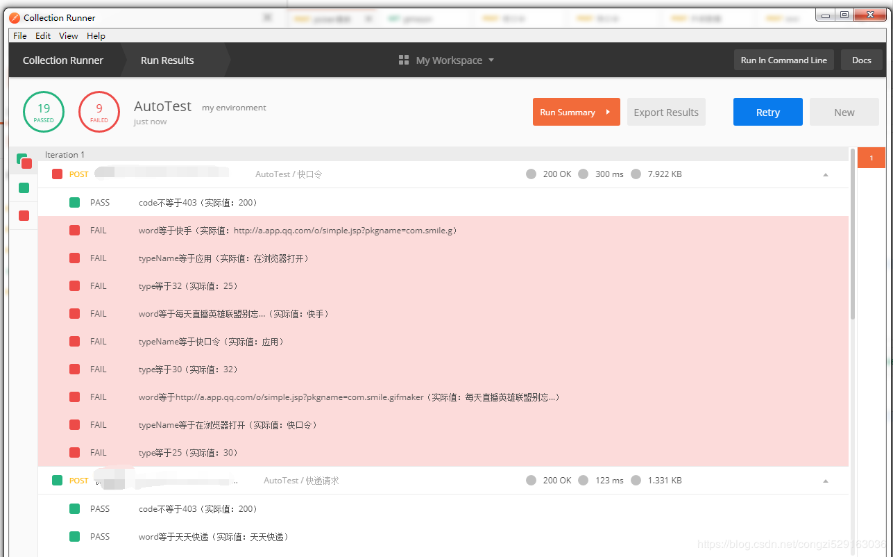 编写完成脚本后,同样通过collection runner执行: