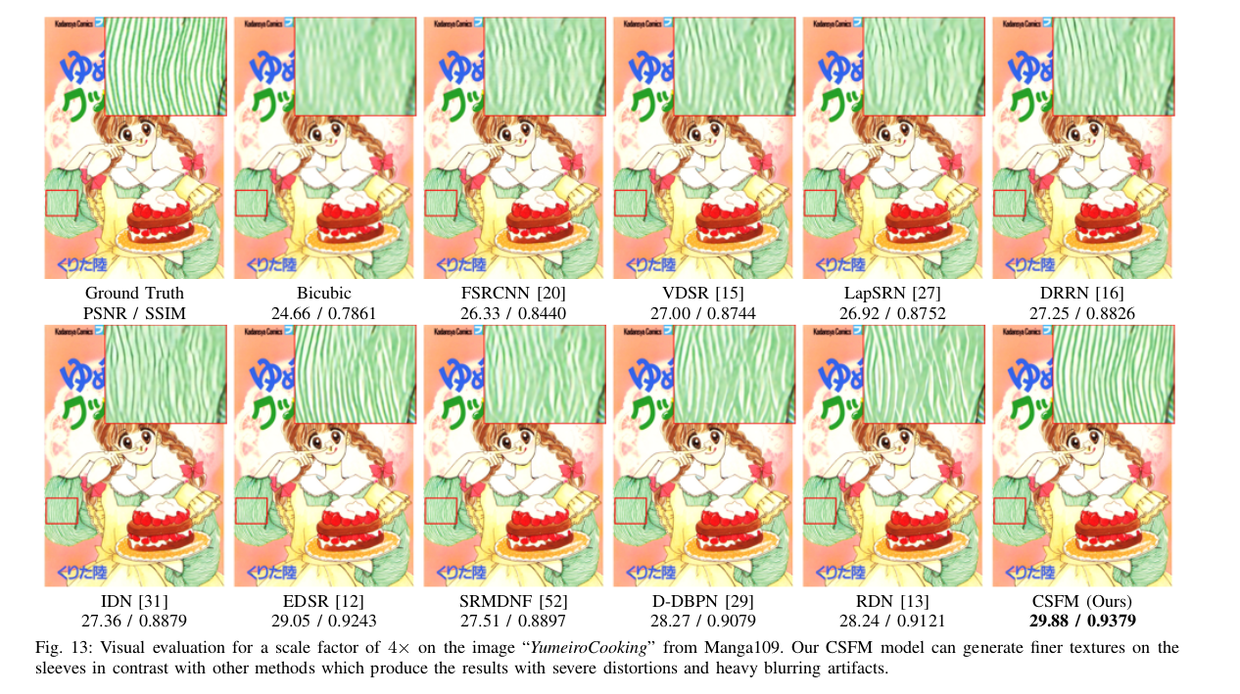 主观上也可以看到,CSFM 恢复出了图片中更多的细节和纹理。