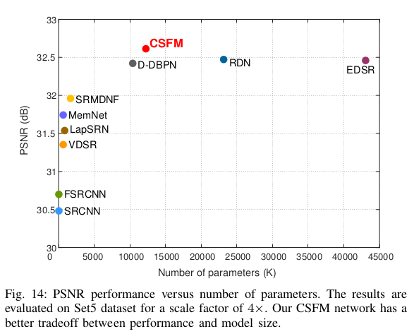 相较于之前表现最好的模型 EDSR,模型的参数量也大大减少。