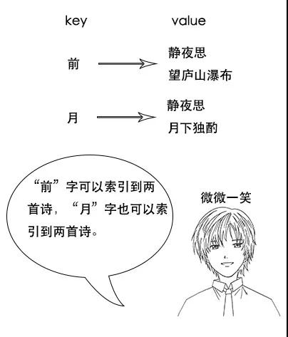 吕老师:但是我让你说出带“前”字的诗句,由于没有索引,你只能遍历脑海中所有诗词,当你的脑海中诗词量大的时候,就很难在短时间内得到结果了。