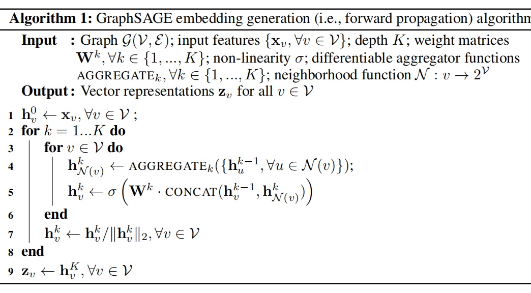 假设现在模型已经训练好,也就是假设已经训练好K个aggregator函数,
