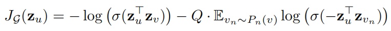 两两节点u和v的embedding向量表示z的无监督的损失函数: