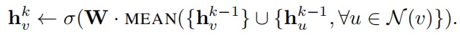 Mean Aggregator: 对所有对邻居节点特征取均值。