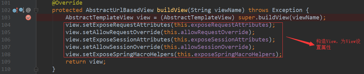我们发现103行super引用了父类,点开进入UrlBasedViewResolver的buildView方法