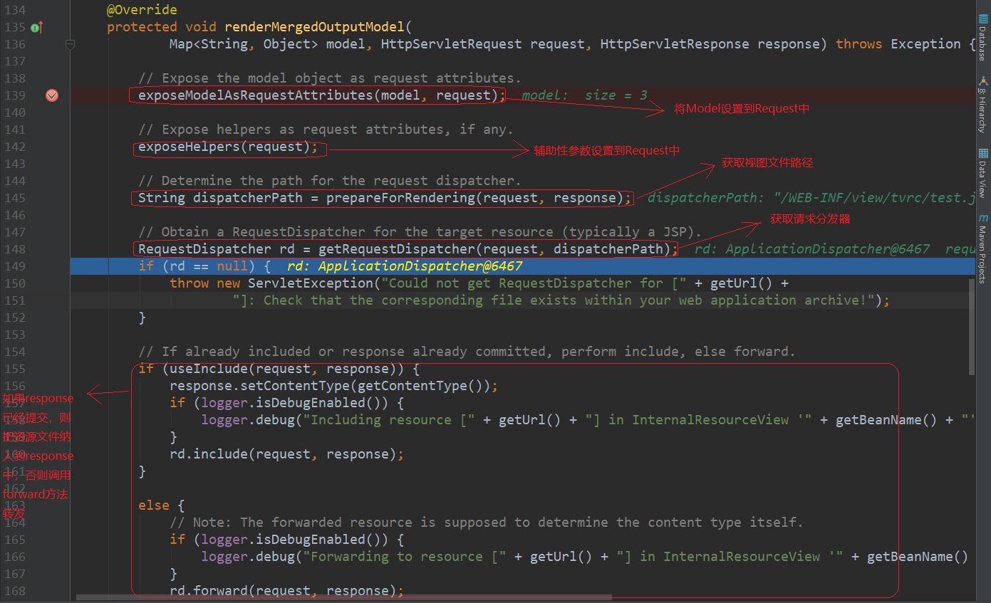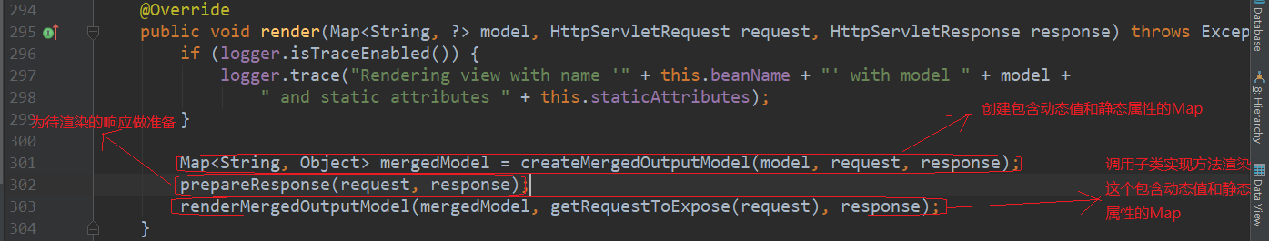 304行此时renderMergedOutputModel方法被子类InternalResourceView实现