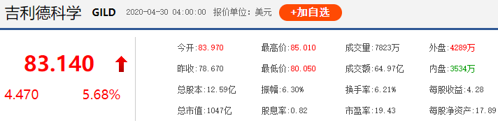随即,纽约时报透露,FDA即将批准瑞德西韦用于新冠肺炎紧急治疗。消息一出,吉利德(Gilead)股票应声上涨。