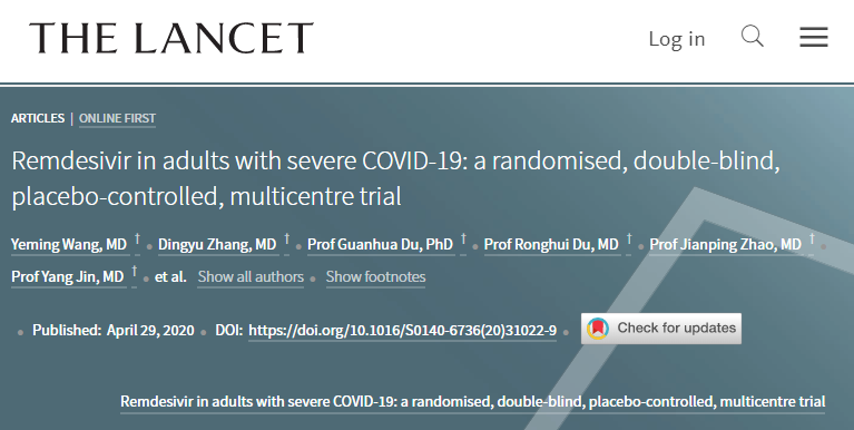 中国团队:瑞德西韦尚未表现出显著的临床效果