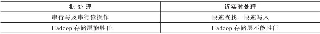 表2-2 Hadoop存储层对批处理和近实时处理模式的适用情况。