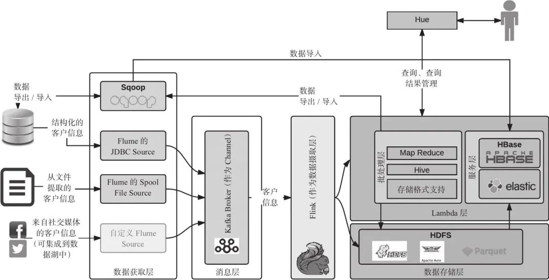 摄取层后就是离线处理和实时处理组成的lambda架构。