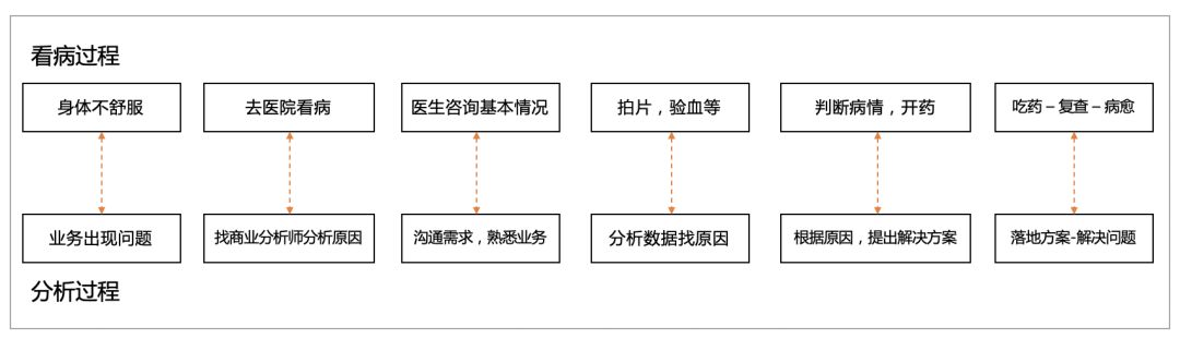面对海量的数据,面对业务出现的问题,我该如何下手呢?其实分析解决问题的过程,和生活中医生给人看病的过程类似,都遵循一套流程。