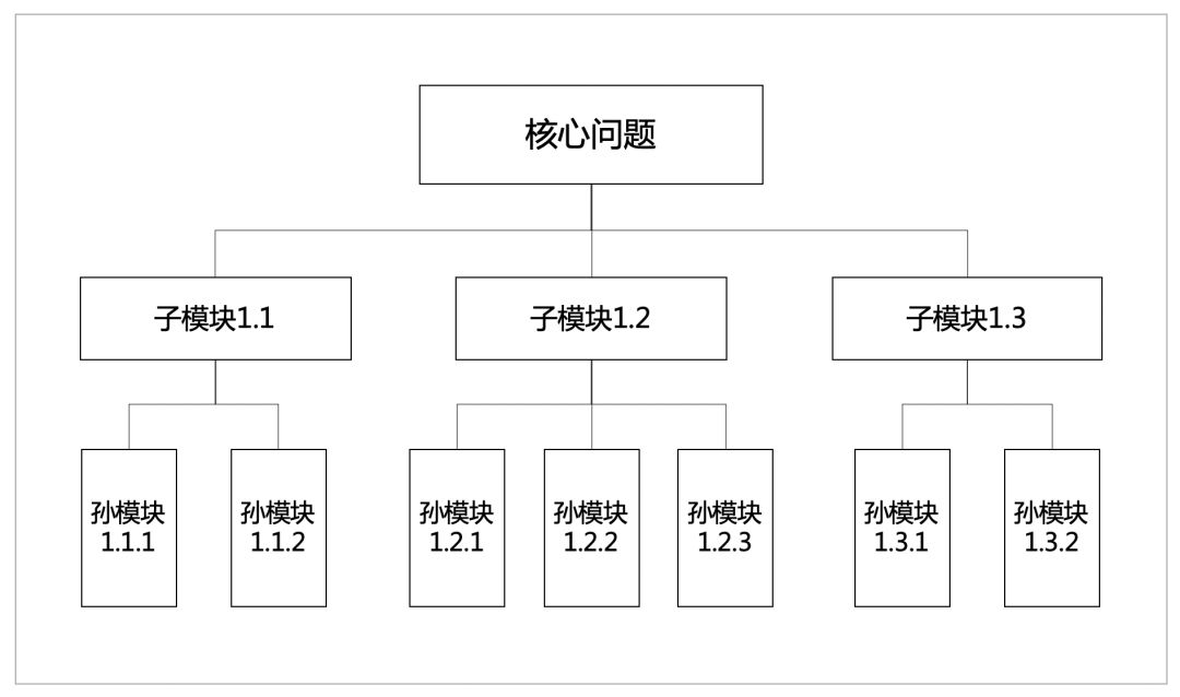 MECE(Mutually Exclusive Collectively Exhaustive)的意思是“相互独立,完全穷尽”,是来自于《金字塔原理》这本书中的说法,意思是业务拆解要全面,且相互独立。这个原则比较好理解,如果拆解的不全面,有遗漏,就可能找不到最终原因;如果拆解的子模块互相影响有交集,就没办法清晰确定是哪个部分的原因。