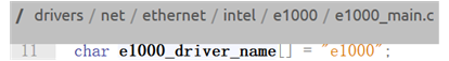 e1000_driver```里面初始化了设备的名字为“e1000”,