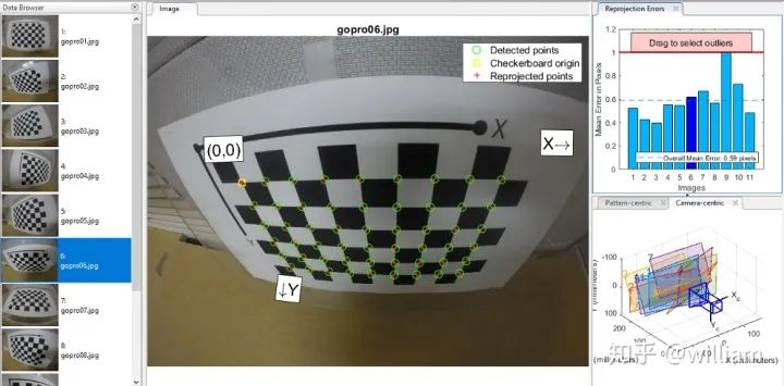 但是我最建议的方式是通过MATLAB的神器tools Camera Calibrator来进行畸变校准, 非常的高效和迅速, 不需要自己编码, 而且能直观的看到校正前后的图像变化. 这是MATLAB的校准教程.