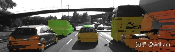 在完成欧几里得坐标转齐次坐标, 转换函数, 齐次坐标转欧几里得坐标这三步之后我们完成了激光雷达到相机的点投影, 从而获得了激光雷达与图像平面相交的区域.