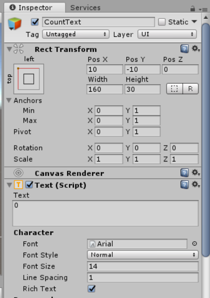 Text的脚本写在Player的脚本里(下面的为新加的部分)