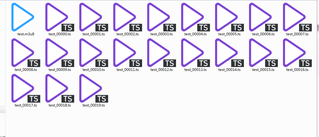test.mp4视频文件每10秒生成一个ts文件,最后生成一个m3u8文件,m3u8文件是ts的索引文件。