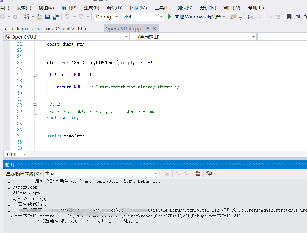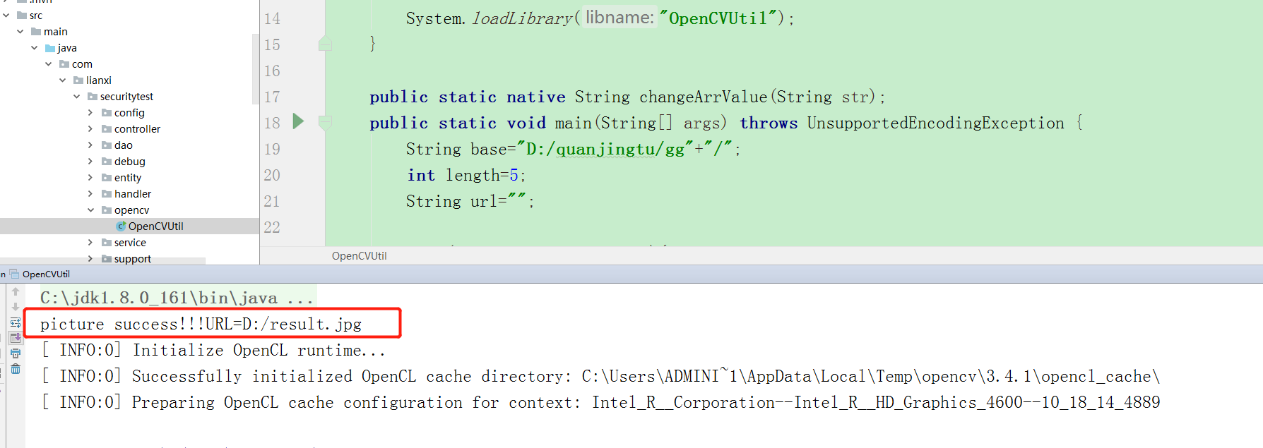 生成对应com_lianxi_securitytest_opencv_OpenCVUtil.h文件