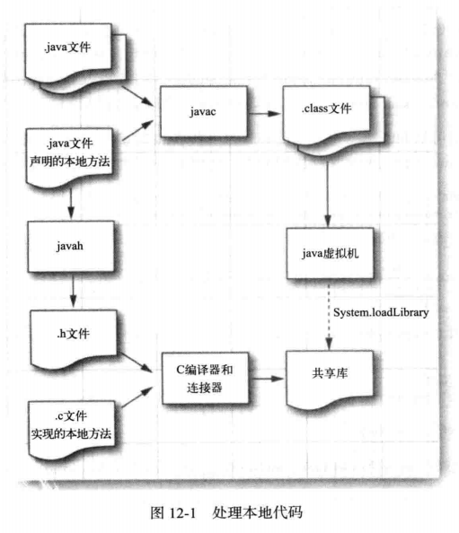 Java Native Interface(简称JNI),Java是跨平台语言,有时候需要调用本地代码,Sun公司提供JNI接口,通过这个接口与操作系统本地代码相互调用,如下图所示是Java中native的调用原理