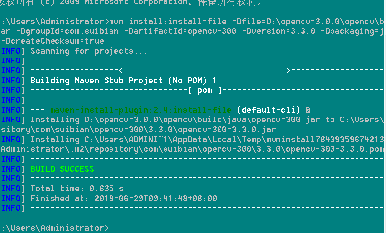 mvn install:install-file -Dfile=D:\opencv-3.0.0\opencv\build\java\opencv-300.jar