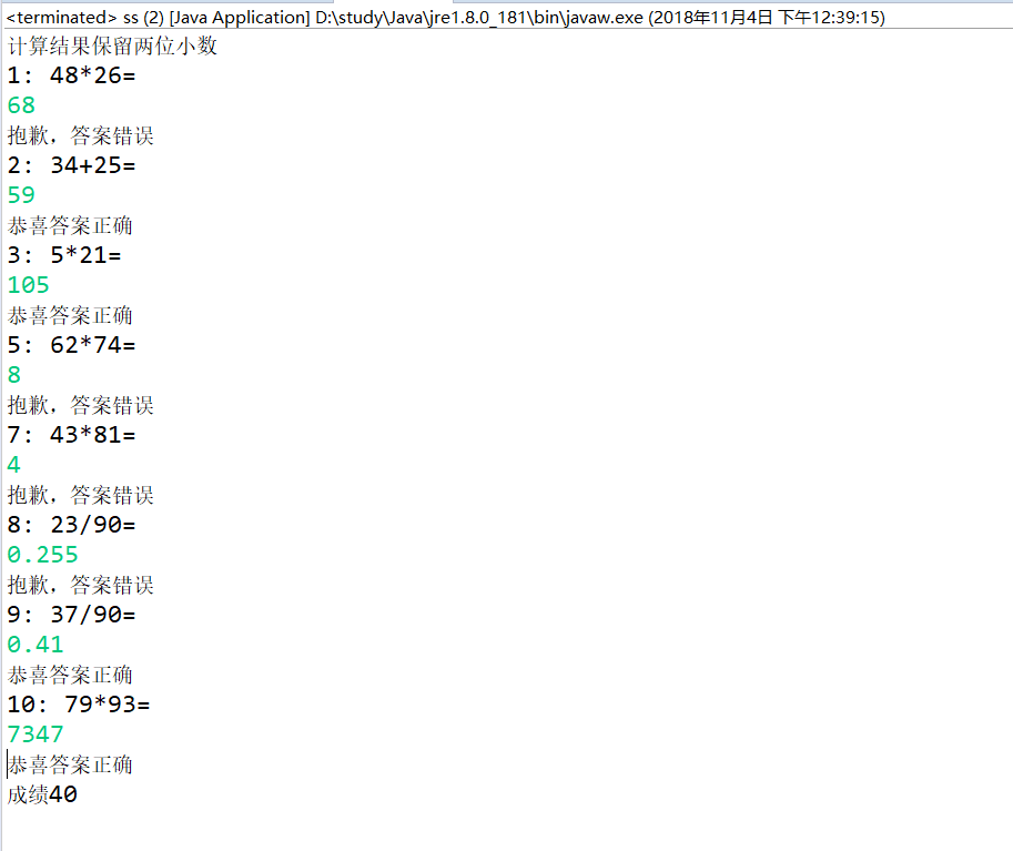 68 System.out.println(i+": "+a+"+"+b+"=");